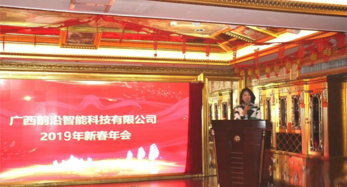 2019年1月26日,广西前沿智能科技有限公司全体员工在红林大酒店举办了以“携手并进 赢战2019”为主题的2018年度公司年会暨2019年迎新春晚宴,全体员工及客户齐聚一堂,共飨盛典。